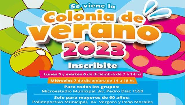 Desde el próximo lunes 5 de diciembre, se habilitarán las inscripciones para la Colonia de Verano 2023 que se desarrollará a partir del 2 de enero en el Polideportivo Municipal.