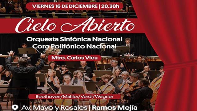 El megaevento cultural de La Matanza, organizado por la Secretaría de Cultura y Educación de La Matanza, en conjunto con la Dirección de Organismos Estables del Ministerio de Cultura de la Nación, como cierre de la extensa agenda cultural 2022, se llevará a cabo el próximo viernes 16 de diciembre, a las 20.30 horas, en la intersección de Avenida de Mayo y Rosales de la localidad de Ramos Mejía, y contará con la actuación de la prestigiosa Orquesta Sinfónica Nacional y el reconocido Coro Polifónico Nacional, bajo la dirección del Maestro Carlos Vieu.
