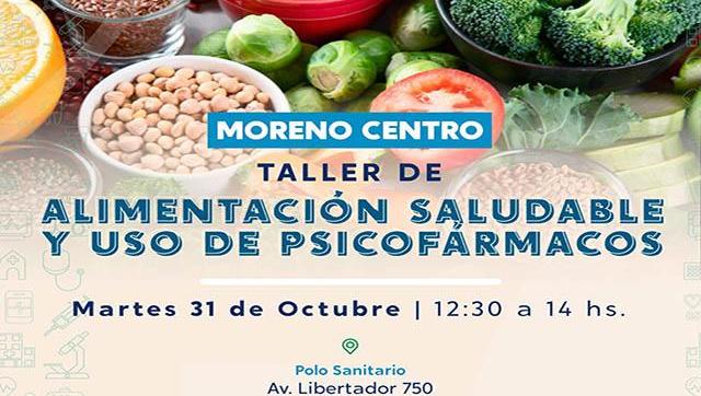El Municipio de Moreno, a través de la Secretaría de Salud y Ambiente, desarrollará un taller de alimentación y psicofármacos, el martes 31 de octubre, de 12.30 a 14 horas, en el Polo Sanitario, ubicado en Avenida Libertador 750.