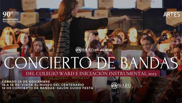 Y desde las 18 hs, en el marco de la 45º Temporada de las Artes se realizará el Concierto de Bandas del Colegio Ward e Iniciación Instrumental 2023.